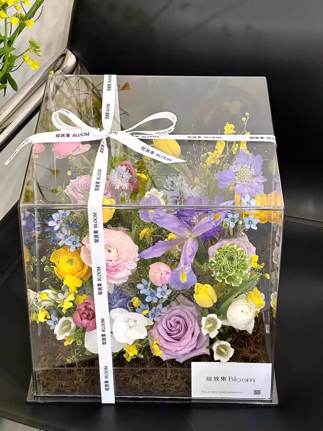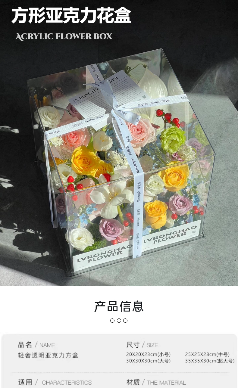 Acrylic transparent flower box, square fresh flower gift packaging box, rose gift box, display box, preserved flower gift empty box