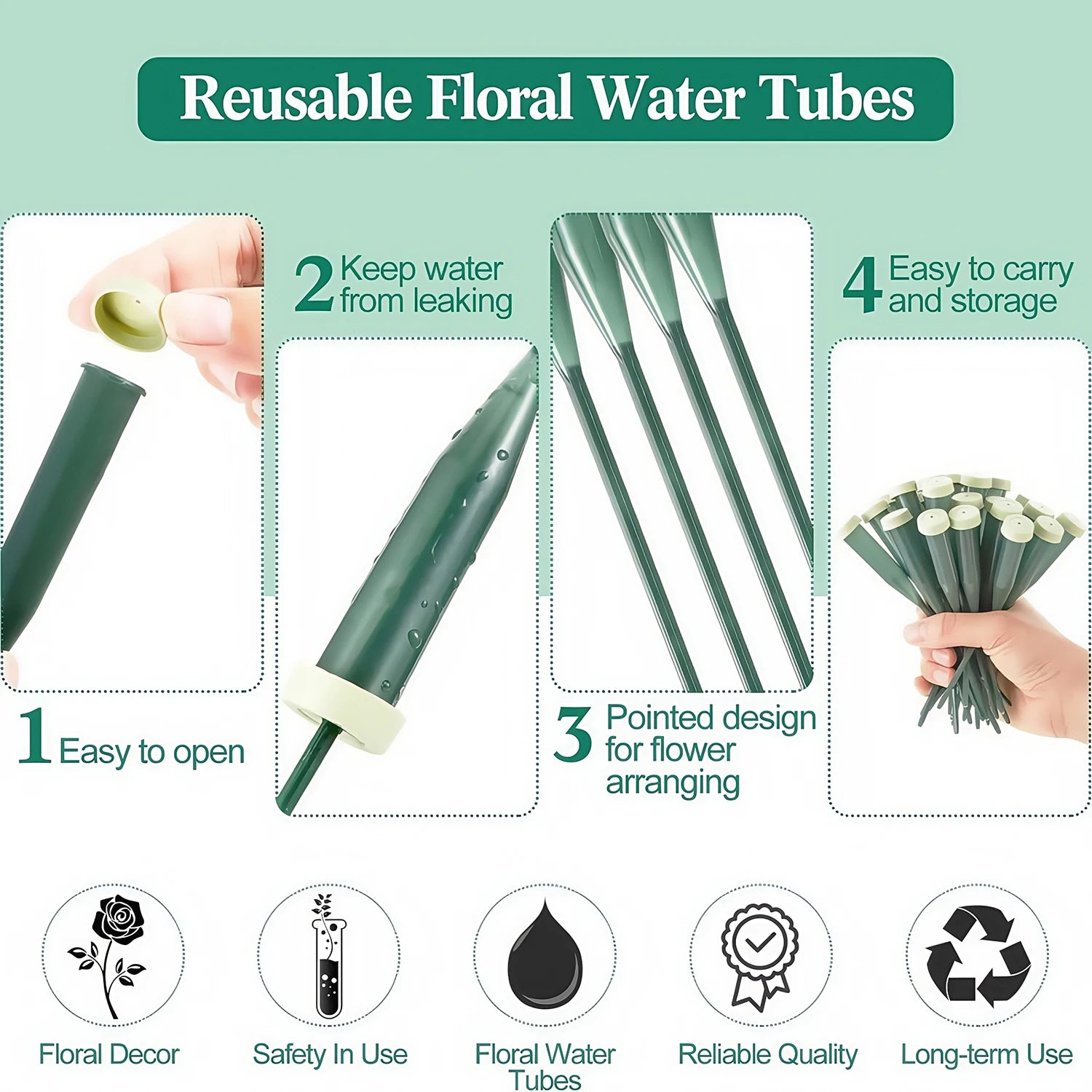Simply fill the tube with water, insert the flower stem, and secure with the rubber cap. Perfect for maintaining flower freshness during transport, storage, or display.
