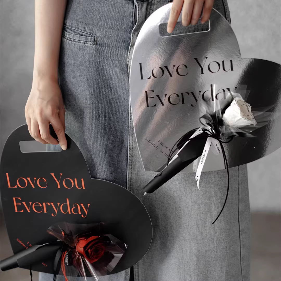 5-pack Carton Fresh flower bag, single rose bouquet bag, heart-shaped flower packaging, hand-held flower arrangement box